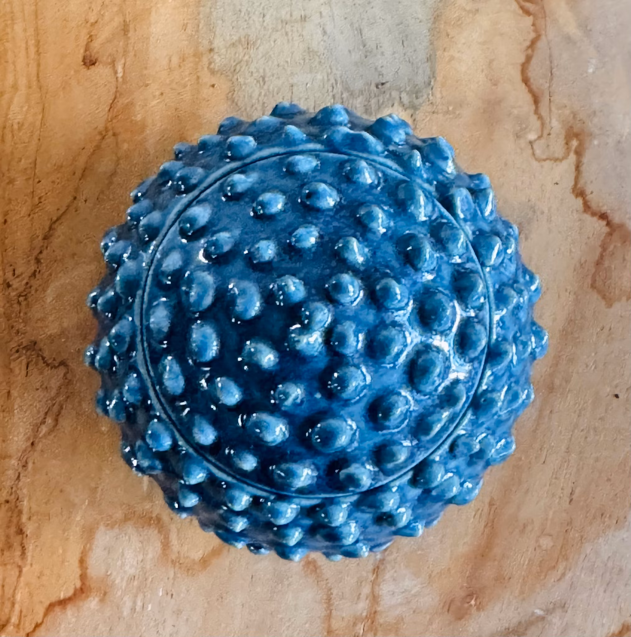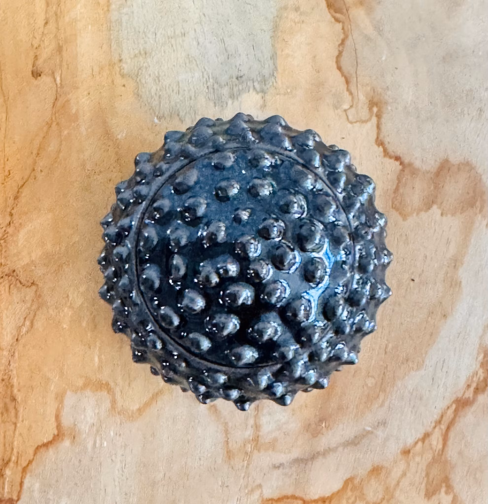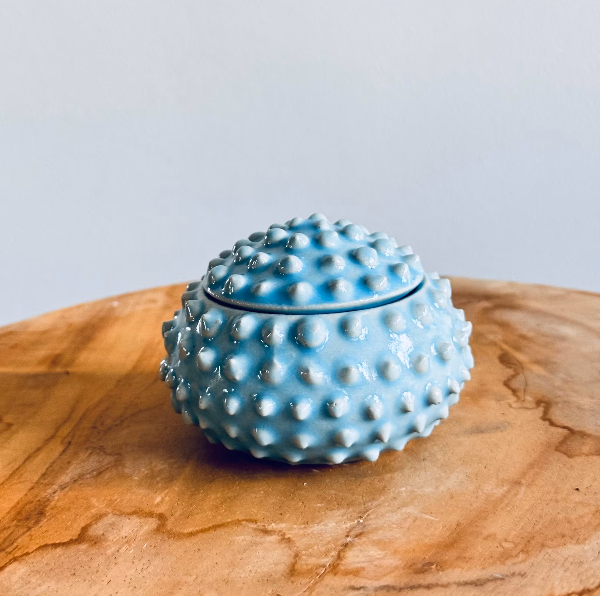 Taggig ask gjord av stengodslera. Finns i färgerna vit, svart, grön, blå, turkos och grå. Varje exemplar är unik och kan skilja sig i både storlek och utförande.