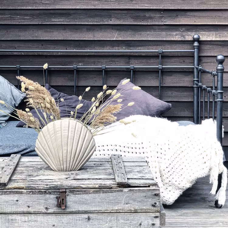 Snäckvas gjord av stengodslera. Matt utsida och glaserad insida. Då vasen är handgjord kan skillnader i färg och form variera.
