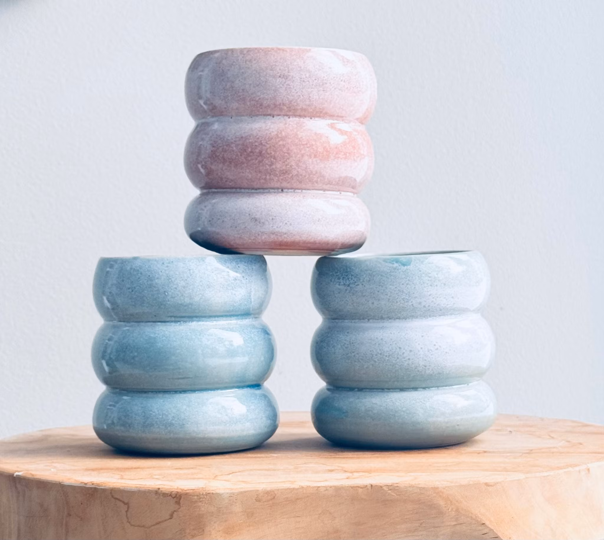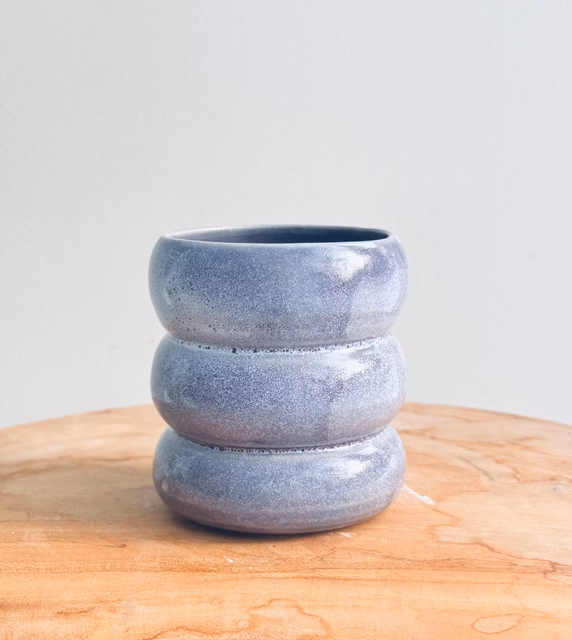 Bubblig mugg som är handgjord av stengodslera med glaserad in- och utsida. Då muggarna är handgjorda kan det förekomma olikheter.